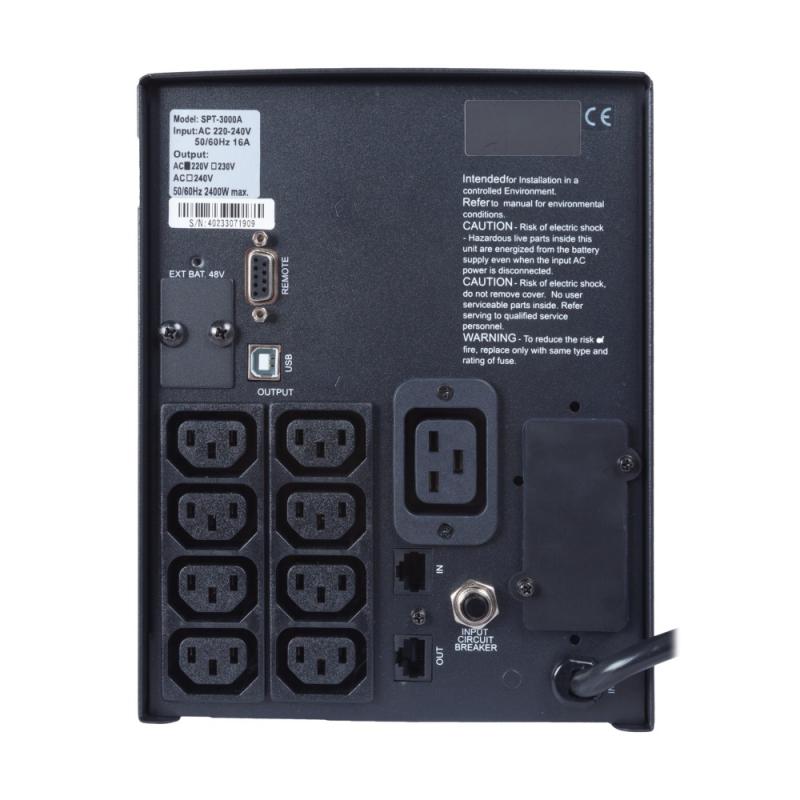 Для конекту обладнання до джерела безперебійного живлення всі моделі з лінійки обзавелися декількома вихідними роз'ємами форм-фактора IEC. Якщо ми розглянемо одну з початкових моделей з лінійки в особі SPT-700-II LED, то він обзавівся 5-ю роз'ємами. У більш старших моделях, наприклад, SPT-3000 II LCD, на борту розташовується вже 8 подібних виходів, а також розетка IEC320 C19. Саме її в більш слабких моделях ви не зможете побачити. Тому можна сказати, що це якийсь ексклюзив.