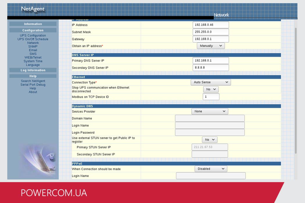 - Вкладка "Network" (мережні опції віддаленого доступу до ДБЖ)