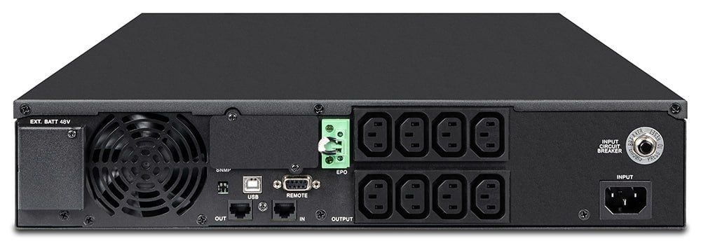 ДБЖ серії SMART RT відрізняється великою кількістю вихідних розеток і широким вибором комунікаційних портів — USB, RS-232, EPO і внутрішній слот для встановлення SNMP-карти.