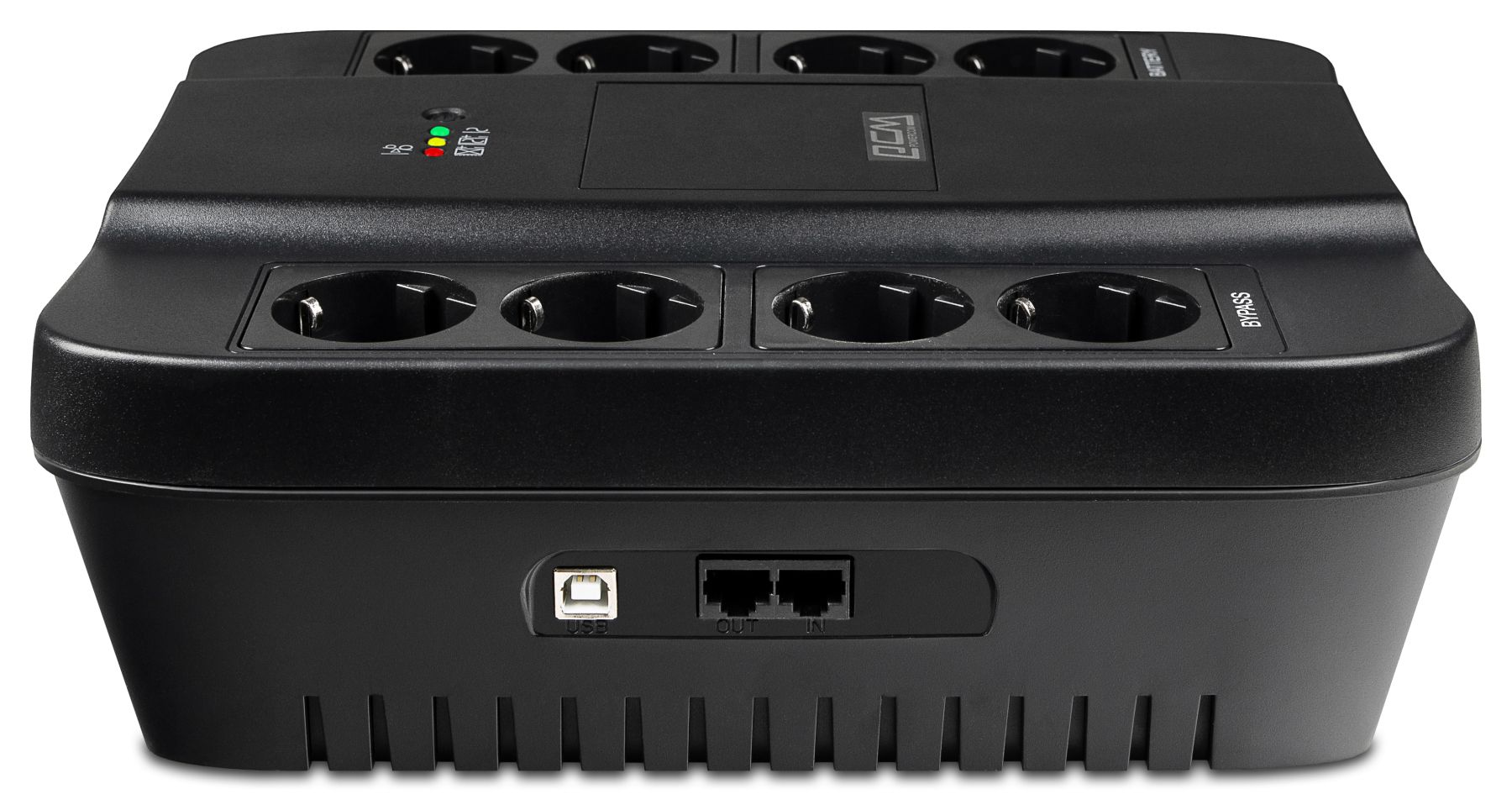 Джерело безперебійного живлення має в конструкції 8 вихідних розеток (8хEURO) стандарту Schuko, завдяки цьому воно здатне під'єднувати до себе безліч приладів і працювати у великому спектрі напруг на виході.
