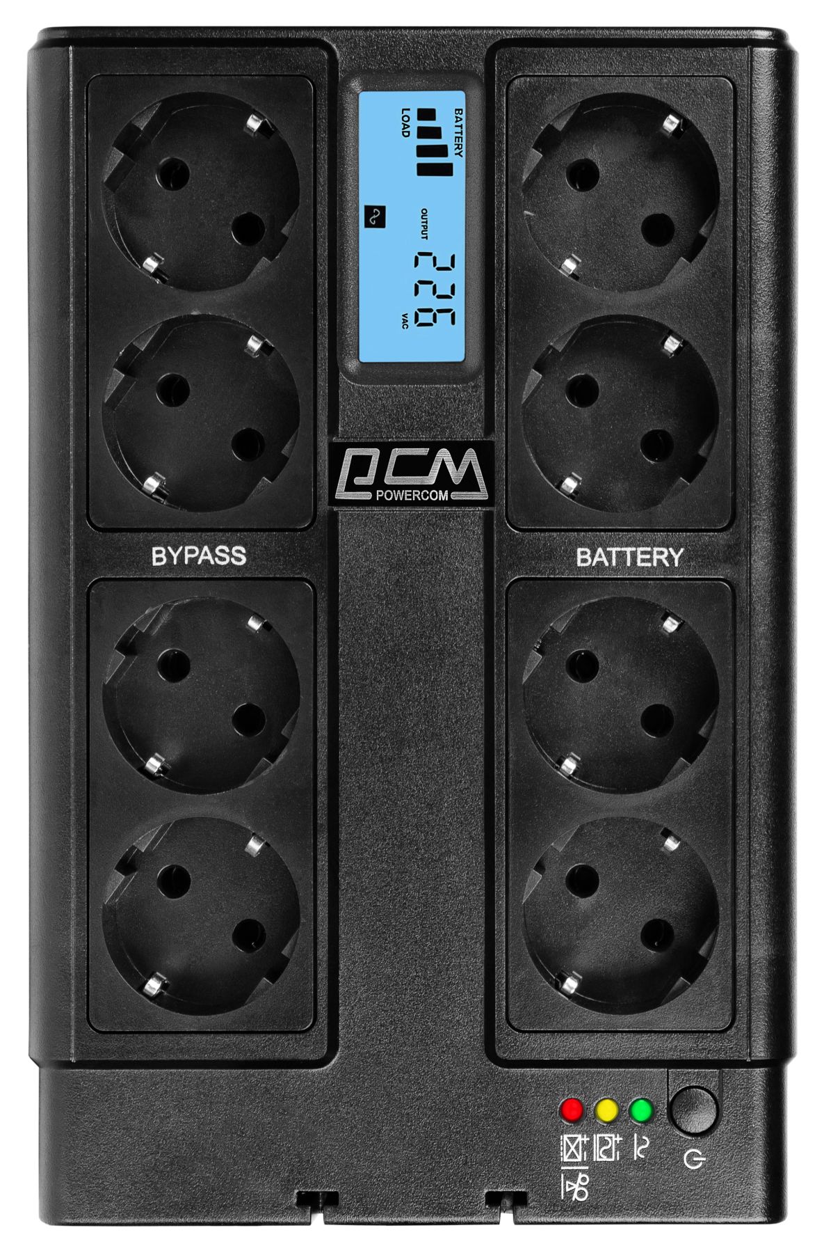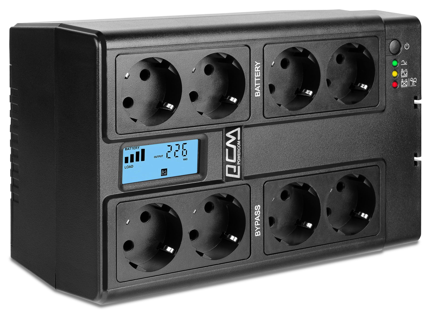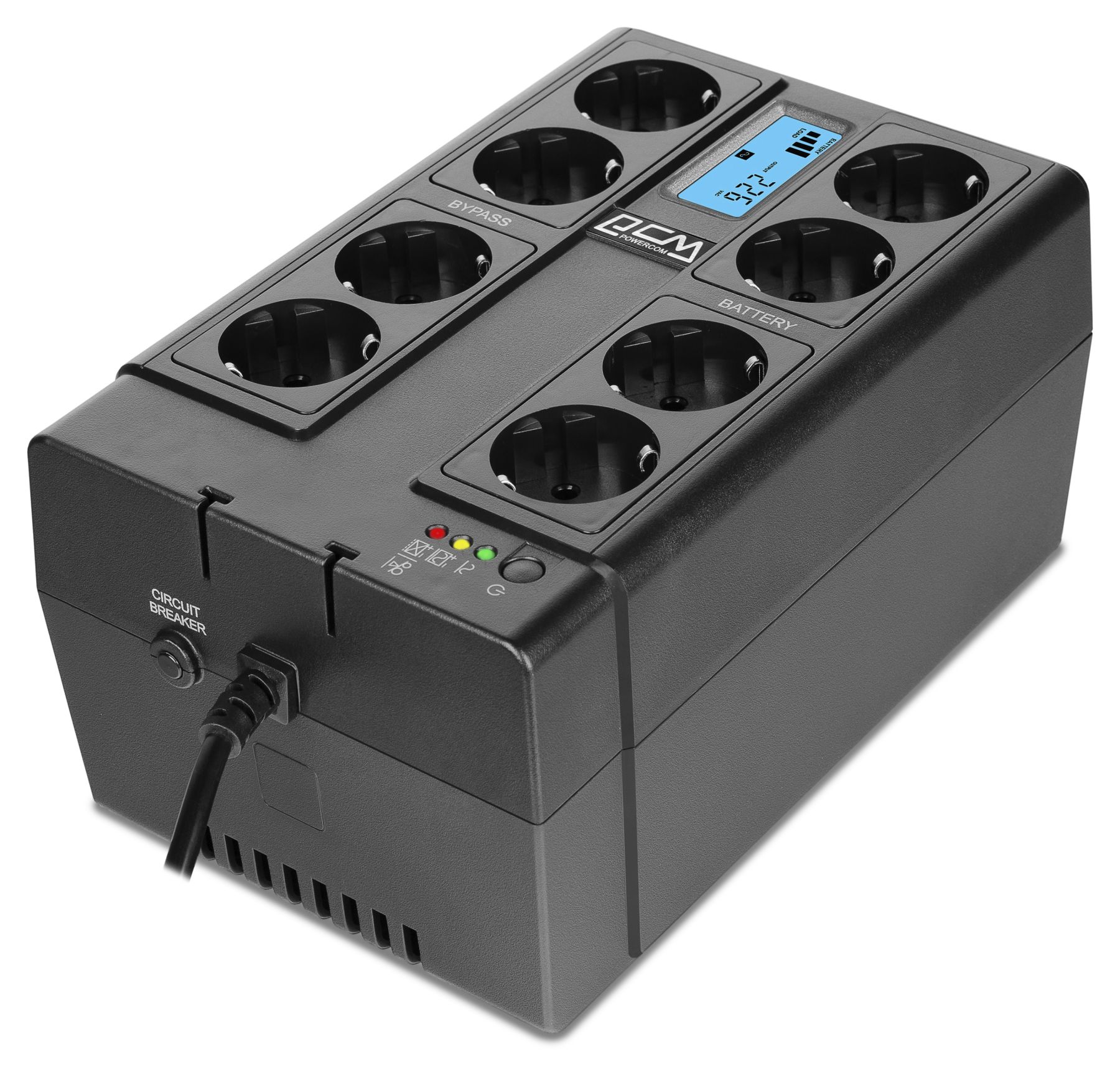 Источник бесперебойного питания CUB-850N LCD от Powercom — это 8-ми розеточный ИБП резервного типа мощностью 850VA/510W.