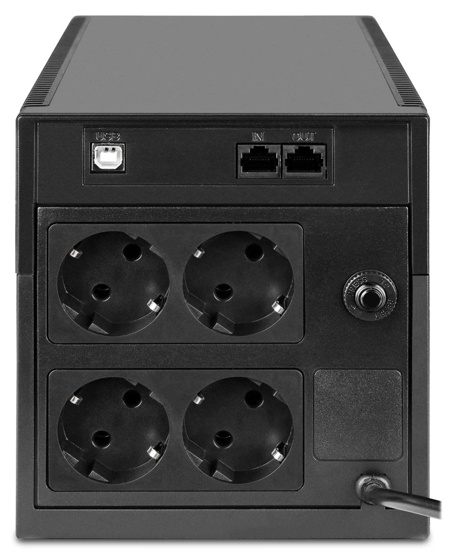 Для удобства подключения оборудования в ИБП предусмотрено четыре выходных розетки EURO (CEE 7/3) с батарейной поддержкой.