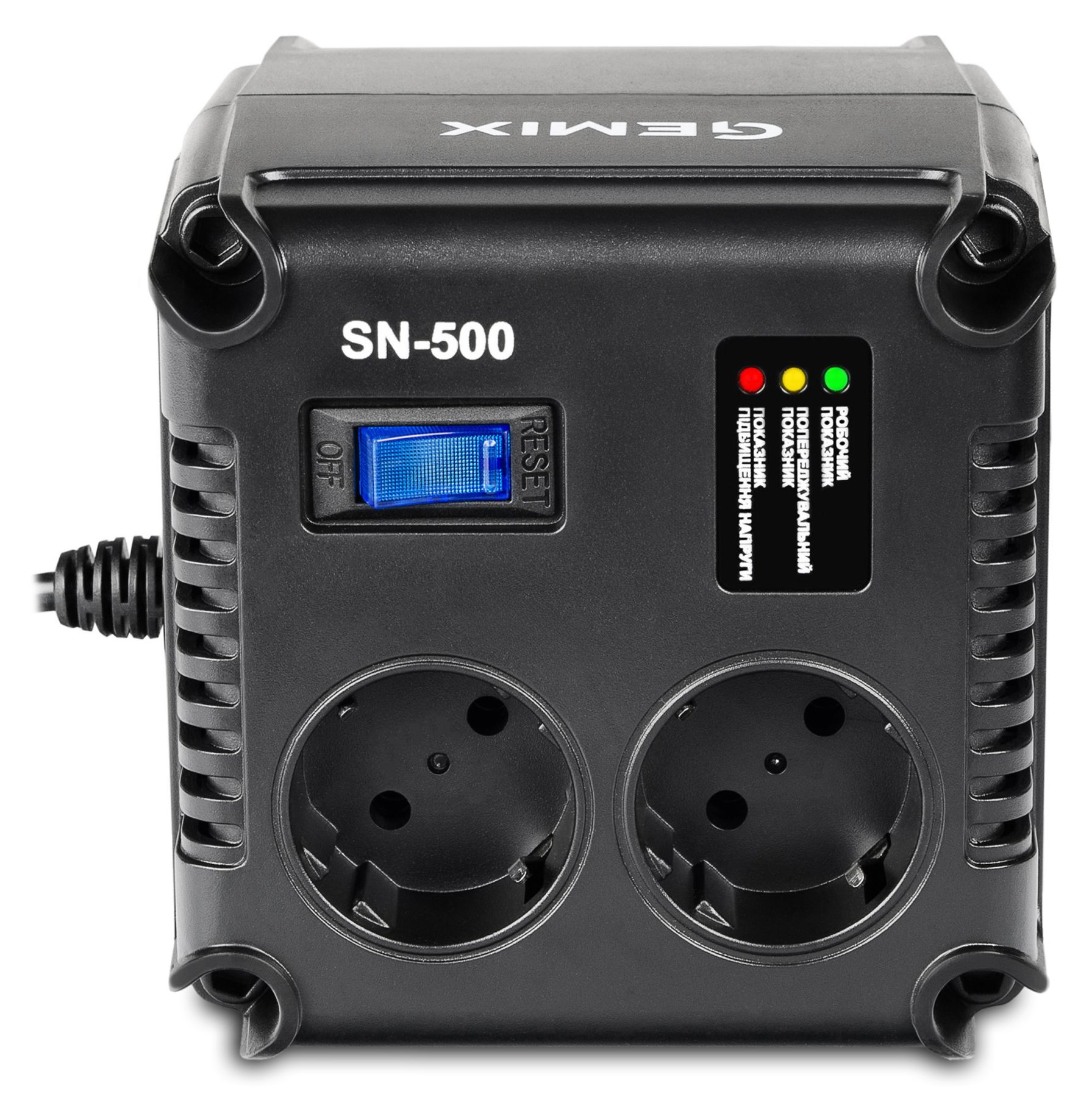 Автоматический стабилизатор Gemix SN-500 напряжения, предназначен для защиты бытовых приборов мощностью до 500 ВА, от основных проблем с электропитанием.
